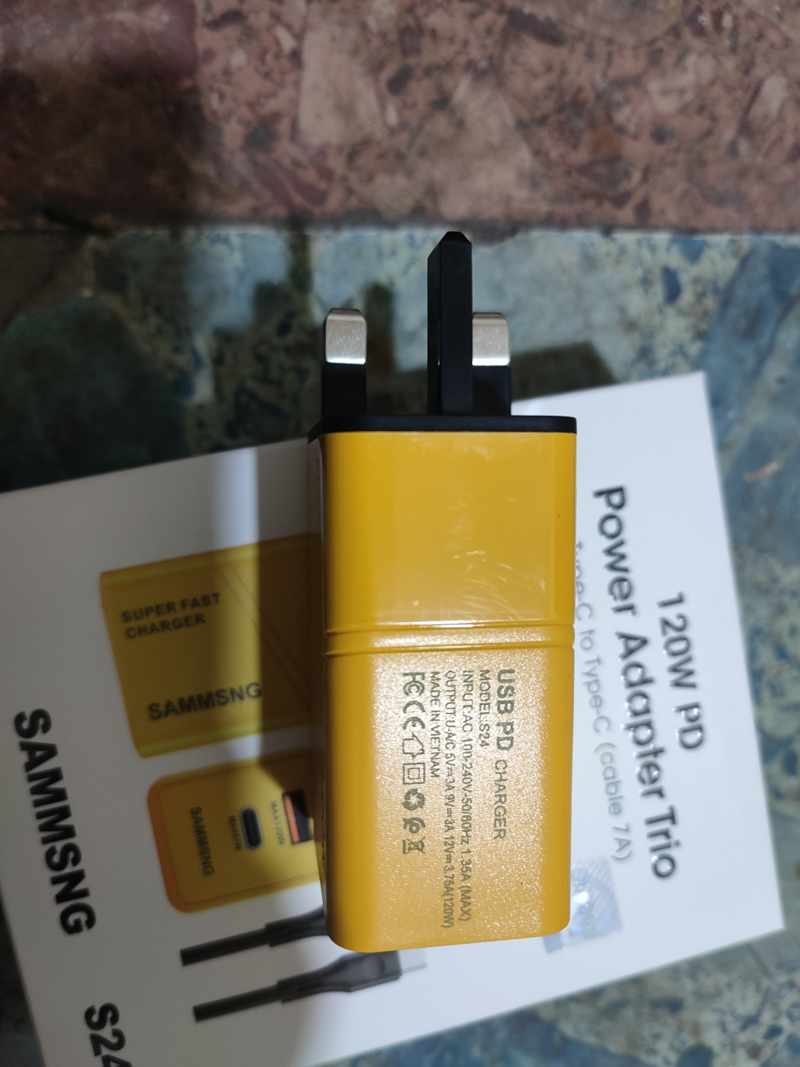 * 🔌 رأس شاحن رئيسي بقوة 120 واط: يشحن تلفونك الـS24 أو أي تلفون حديث بسرعة البرق!