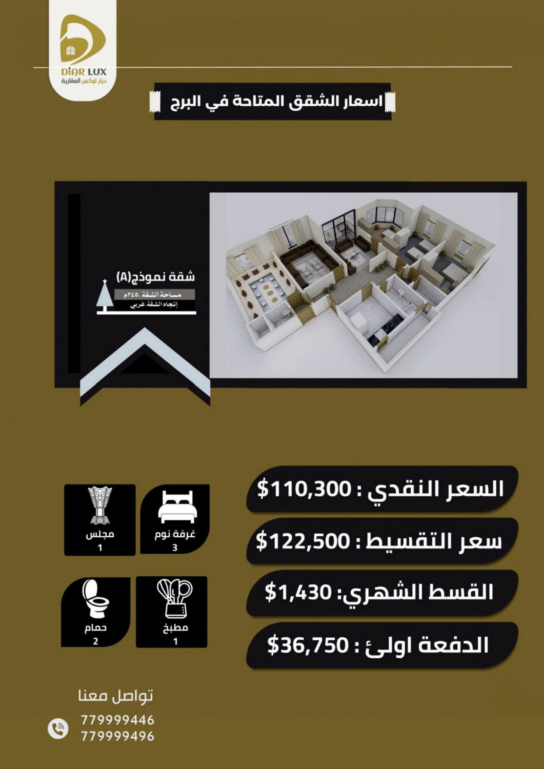 - دورين مواقف سيارات ومصعد كهربائي واسع.