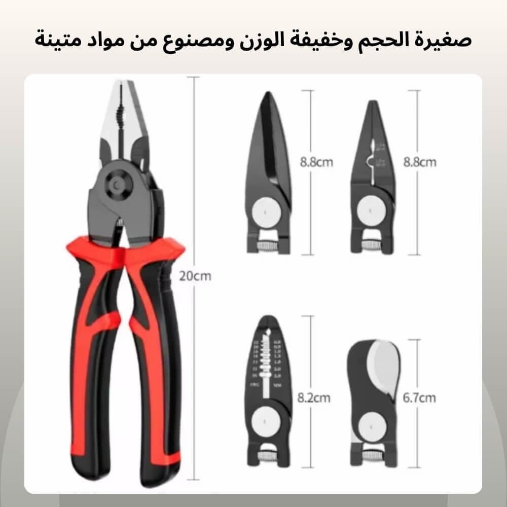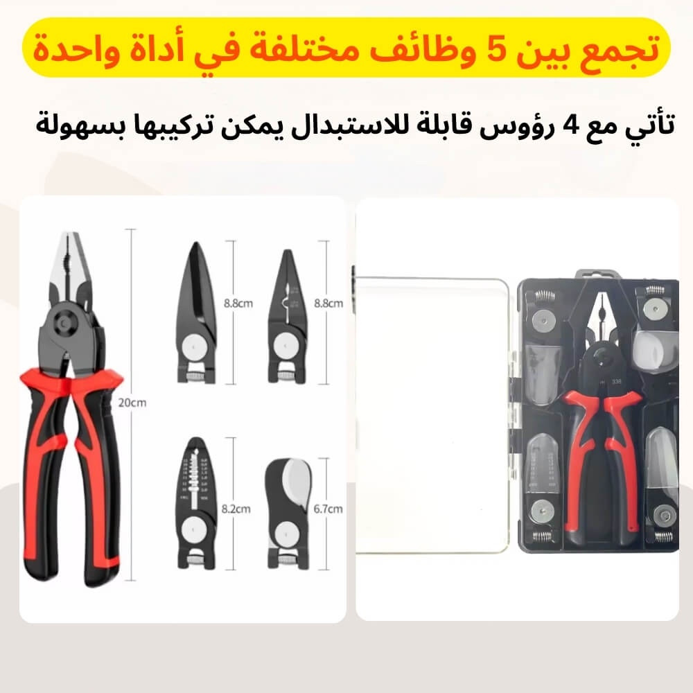 * متعددة الرؤوس: تأتي مع أربعة رؤوس قابلة للتبديل، لكل منها وظيفة مختلفة مثل القص، والتقطيع، والضغط، والمسك، مما يوفر عليك شراء أدوات متعددة.